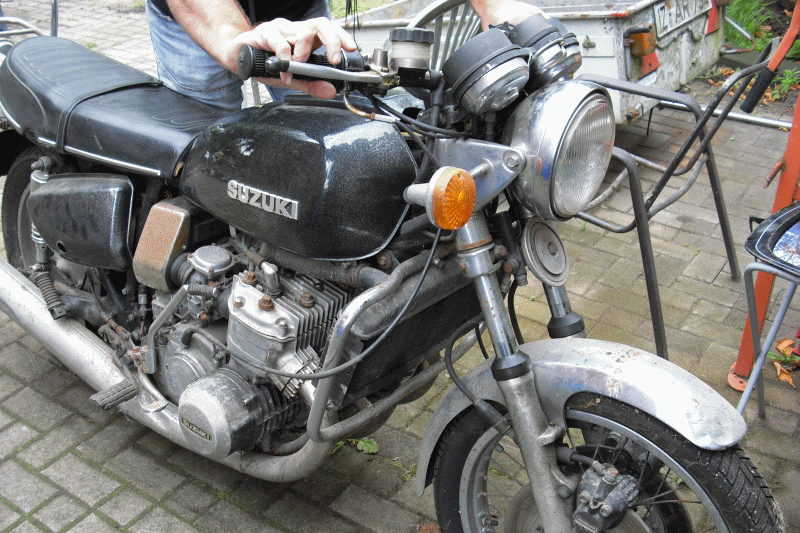 die Suzuki GT 750 fast vollständig zusammengebaut und zum laufen gebracht.